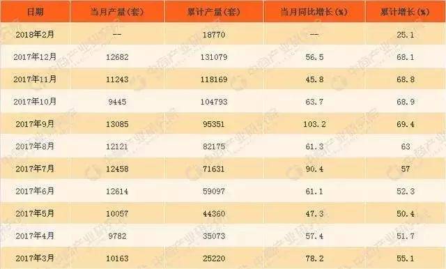 根據中商產業研究院大數據庫,2018年1-2月中國工業機器人產量統計顯示,2018年1-2月中國工業機器人累計產量為18770套,累計增長25.1%。